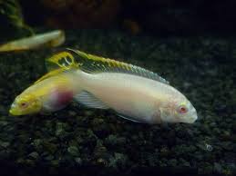 COMPORTAMIENTO: Pacífico salvo en épocas de cría... el problema es que para estos peces la época de cría es siempre. Aún así son relativamente pacíficos siempre que los demás peces se mantengan alejados de sus cuevas y de su numerosa prole. Reproducción: Muy fácil de conseguir siempre que se le proporcione espacio, agua de calidad y buenos alimentos. El macho excava una cueva bajo una piedra o un tronco (en ocasiones aprovecha cuevas ya hechas o una vasija de barro apropiada), en sucesivas puestas, una vez formada la pareja, la hembra colabora en la labor de excavación, si es que es necesario construir nuevas cuevas. El ritual de apareamiento es muy interesante. La hembra adopta sus colores más brillantes y ejecuta una danza frente al macho en la que se dobla sobre si misma en forma de "U" y de "S" mostrándole su vientre, de un fuerte color rojo. Estas danzas y contorneos se acompañan de los clásicos movimientos oscilantes de cabeza y temblores de todos los cíclidos. Cuando ambos se ponen de acuerdo, la hembra va depositando en la pared superior de la cueva 4-6 huevos cada vez, saliendo inmediatamente para permitir la entrada del macho a fecundar los huevos; las entradas y salidas de uno y otro se repiten hasta que en la cavidad hay de 60 a 200 huevos de color amarillento de tamaño medio (2 mm de diámetro). La hembra permanece en ese momento en la cueva y el macho vigila los alrededores (y en ocasiones se asegura de que la hembra no abandone la cueva). Los huevos eclosionan en torno a las 72 horas. Cuando los alevines son capaces de nadar, cinco días después de la eclosión, ambos progenitores cuidan de las crías y los pastorean por todo su territorio en busca de alimento. Los padres suelen llevar las aletas ventrales plegadas cuando están con los alevines, cuando algún peligro acecha a las crías un movimiento rápido de extenderlas y replegarlas provoca que los alevines se agrupen bajo ellos. Se les puede alimentar con nauplios de artemia y enseguida aceptan comida en escamas finamente pulverizada. Las especies de Pelvicachromis producen relaciones de sexo (macho/hembra) extremas a niveles de pH extremos. Un pH cercano al neutro, produce una relación entre sexos de aproximadamente 50:50. A pH más ácido y agua más blanda mayor es la proporción de machos, y a pH más alcalino y agua más dura, mayor proporción de hembras. Los peces empiezan a mostrar su madurez sexual a los 8 meses de edad. Como en la mayoría de los cíclidos, los padres primerizos a menudo no saben cuidar sus primeras puestas, que son devoradas por los propios progenitores, pero enseguida aprenden y se convierten en unos excepcionales padres.